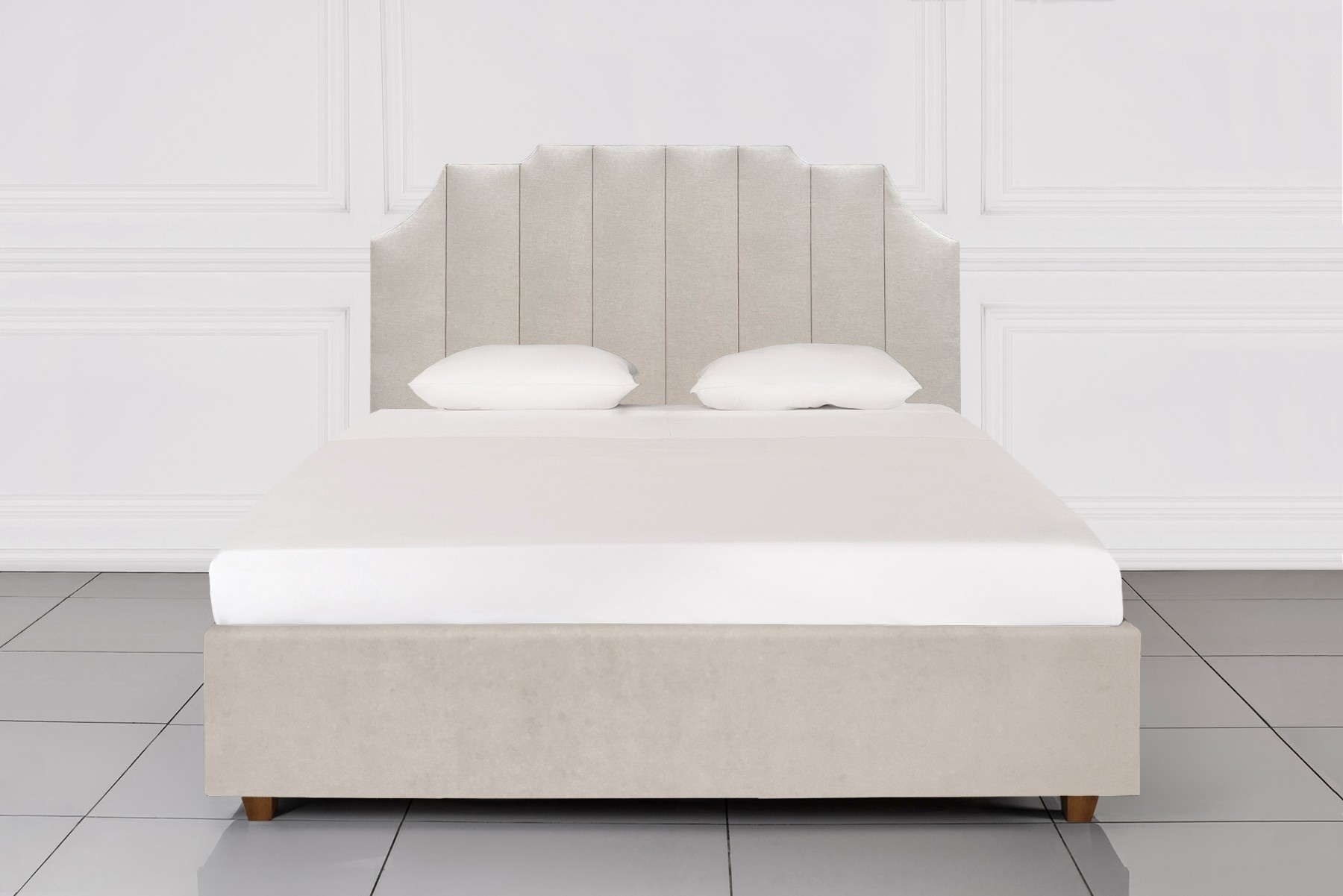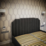 Интересная форма изголовья соединилась с вертикальными полосами в гармоничном союзе. Кровать получилась безусловно стильной, утонченной и идеально подойдет для ценителей красивого, интеллигентного интерьера.